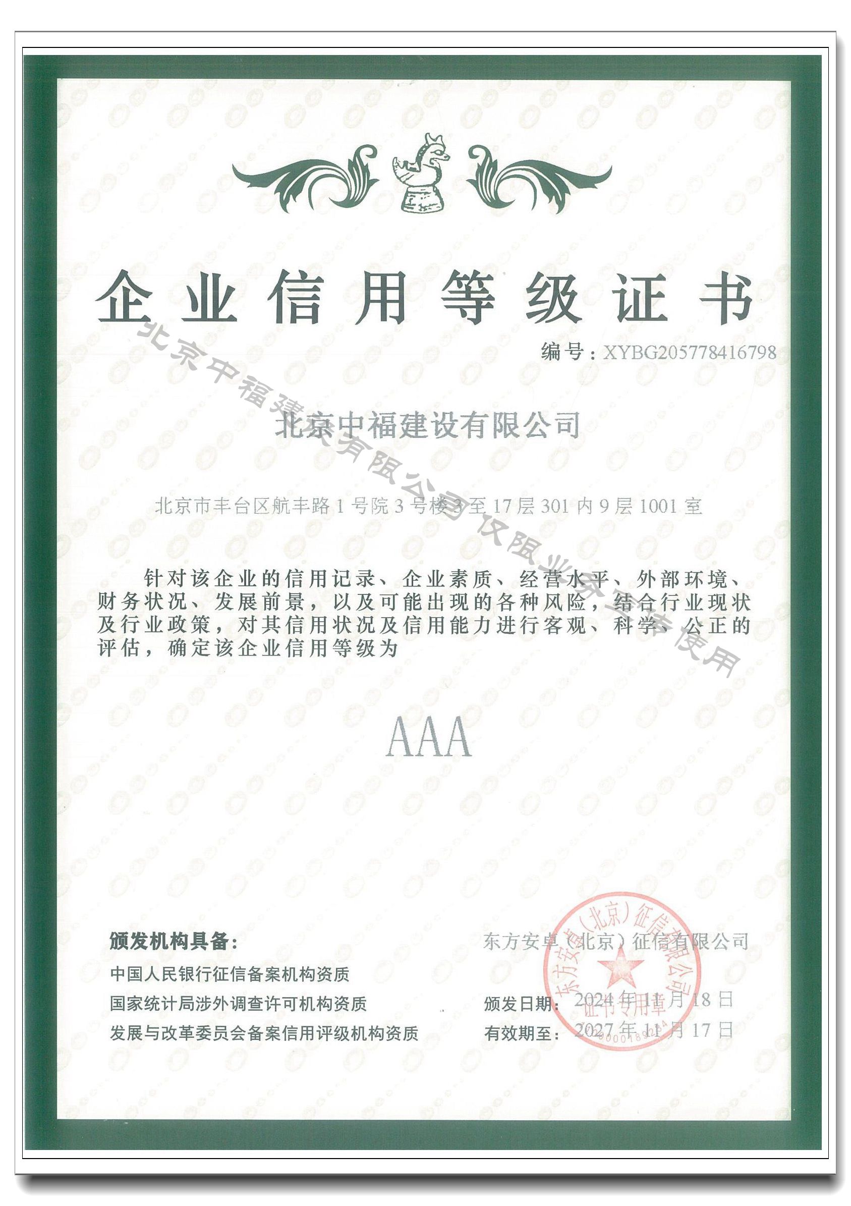 企業(yè)信用等級(jí)3A證書